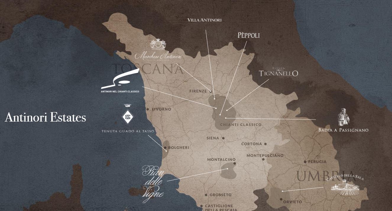 Naast Toscane maakt de familie Antinori ook in andere gebieden van Italië prachtige wijnen.