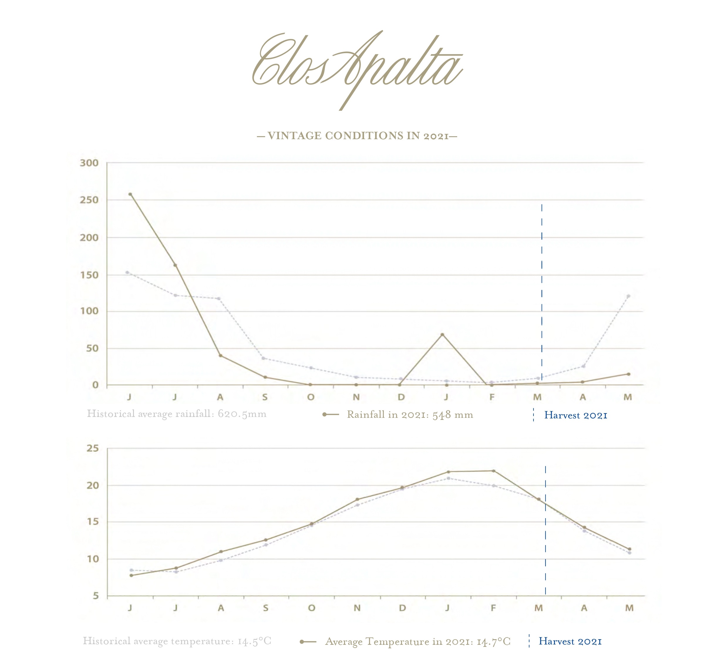 De jaargang 2021 stond in het teken van uitdagende maar gunstige weersomstandigheden. Het groeiseizoen begon met een koele lente en vroege zomer, wat de druiven een langzamere, gecontroleerde rijping gaf. Dit type weer is ideaal voor druiven zoals carmenère, cabernet sauvignon en merlot, die de kern vormen van Clos Apalta. Later in het seizoen zorgde een warme, droge herfst voor perfect rijpe druiven met geconcentreerde smaken, wat resulteerde in een uitgebalanceerde wijn met diepe complexiteit.